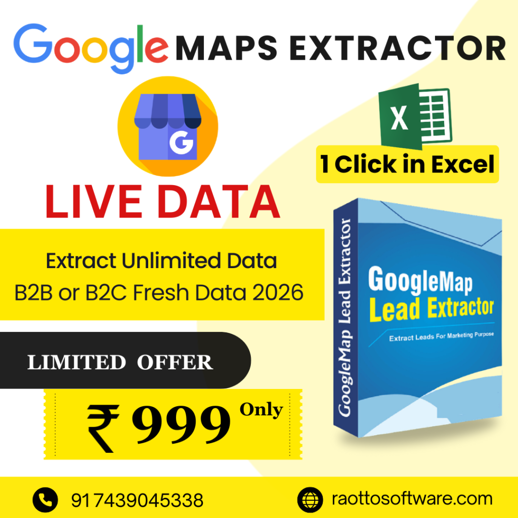 Latest Google Maps Extractor Software will extract Unlimited Information and Contacts Phone, Email, website links, Reviews, Company Name, Office Adresses, latitude and longitude, etc, and when All Data Extract done by Software You Can Downloand just Single click and Download In CSV. File , Just Call or WhatsApp Now For Software Demo. We’ll Providing Free Live Demo You Can check and Search Any Business, We also Give Training And Support 24*7 hrs when you are comfotable, just Call or Whatsapp Now for Demo!